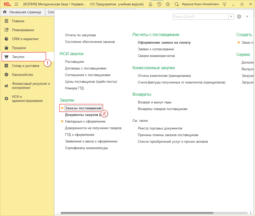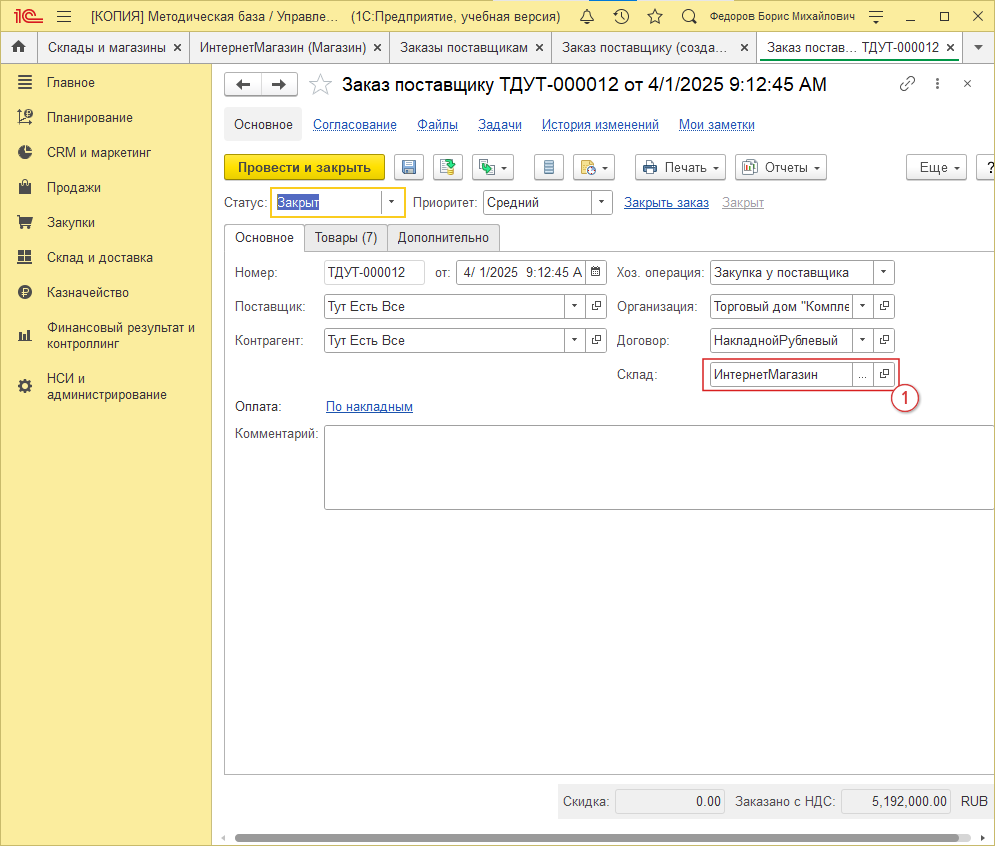 Настроенный склад можно пополнять самыми обычными спозобами. Например, “Закупками”.