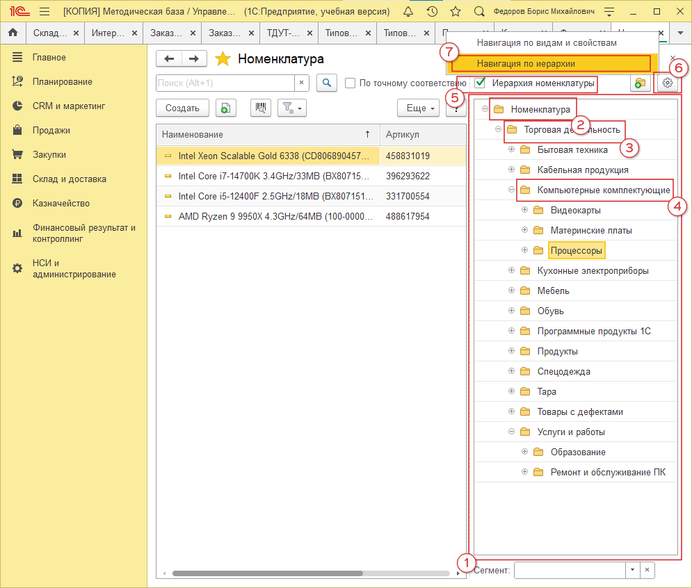 и дерево иерархий в номенклатуре (рис. 32, 1)