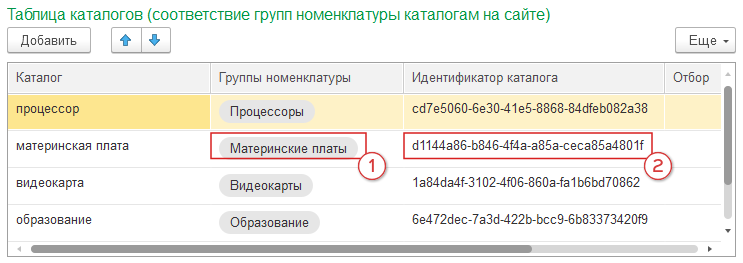 заполняем блок “каталог” (рис. 33, 1) 1С каталогами со следующими соответствиями: